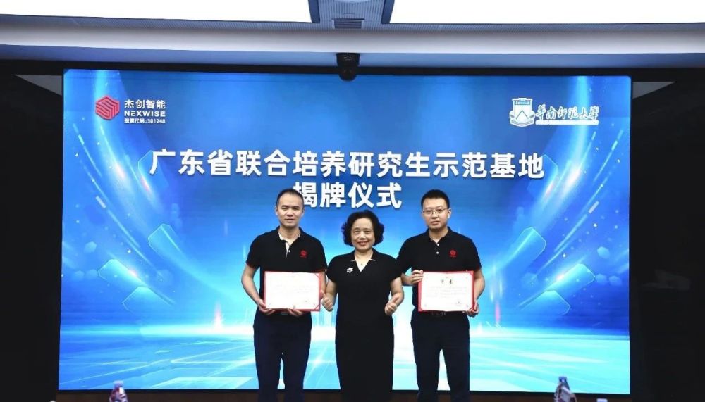 随后,yabo鸭脖智能与华师举行了广东省研究生联合培养示范基地揭牌仪式,对yabo鸭脖智能指导老师进行了受聘仪式,颁发证书。
