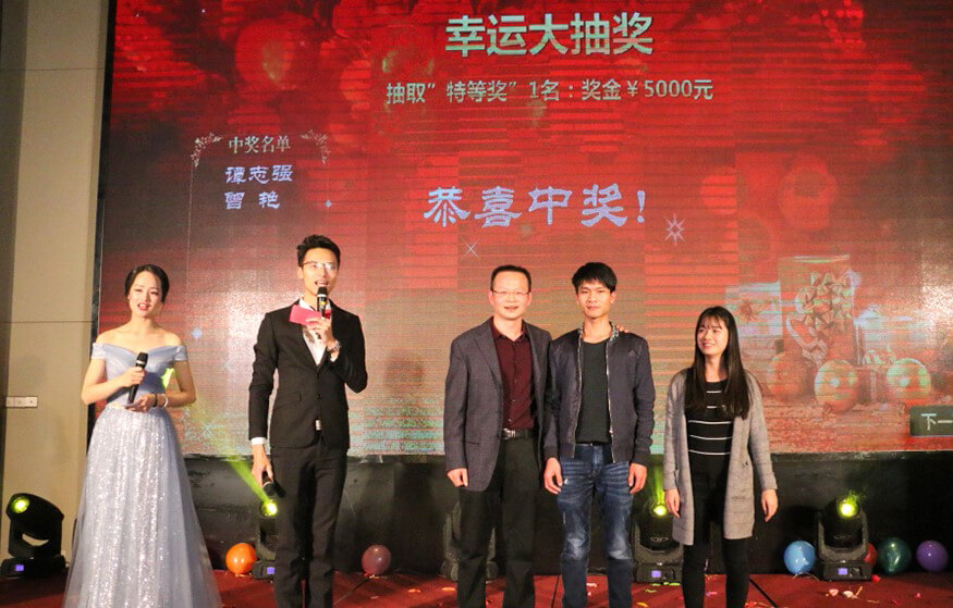 年会进行过程中,还穿插开展了四轮幸运大抽奖活动。在全场人员的兴奋期待和无比喜悦中,随着一个个大奖被抽出,掌声、欢呼声响彻会场,不断掀起欢乐的高潮。幸运抽奖既是提升年会喜庆气氛的助兴剂,还是给予嘉宾和员工的一份额外惊喜和回馈。