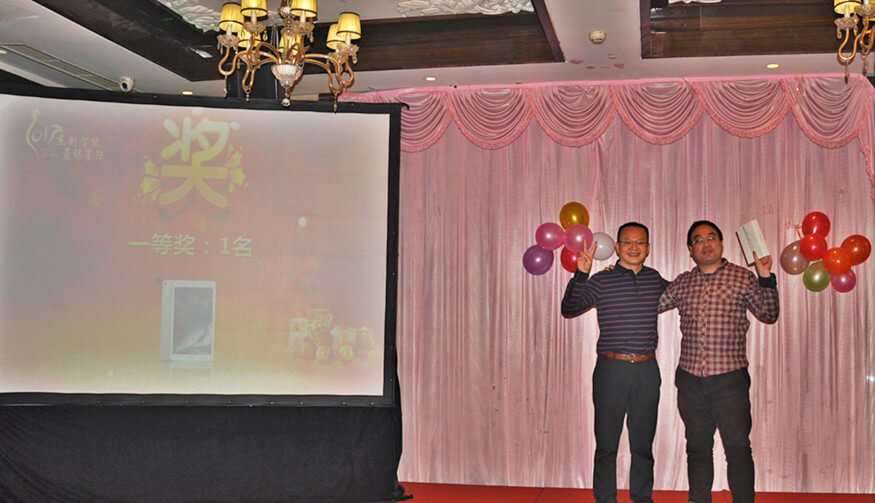 作为年会的主要环节,颁奖典礼特别隆重喜庆、激动人心。蓝玛星际和yabo鸭脖智能北京分公司的很多员工,在过去一年里,勤勤恳恳,兢兢业业,在工作中取得了优异的成绩。为了表彰他们的敬业精神和突出表现,年会上对他们进行了大力嘉奖。先进集体(研发部)、最佳经理人(张继)、优秀员工(张春晓、董学慧、李晓林、马栋、李海云、刘盼、杜飞)、优秀实习生(肖坚星),在全场人员的热烈掌声和称赞中接受了表彰和奖励。