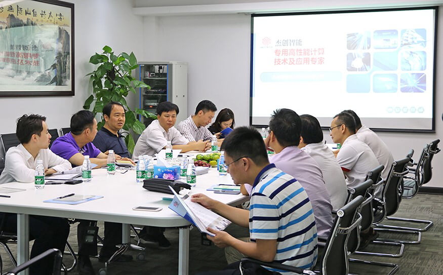 研发中心总经理朱勇杰向各位领导介绍了公司自主研发的系列产品和技术,重点讲解了专用高性能计算平台这一核心技术的研发历程、行业地位、应用领域、发展前景等,以及依托该平台研发出的一系列具有一流水平的密码分析和口令分析产品、无人机侦察管控一体化设备、视频图像模式识别服务器、区块链工作量证明服务器等。